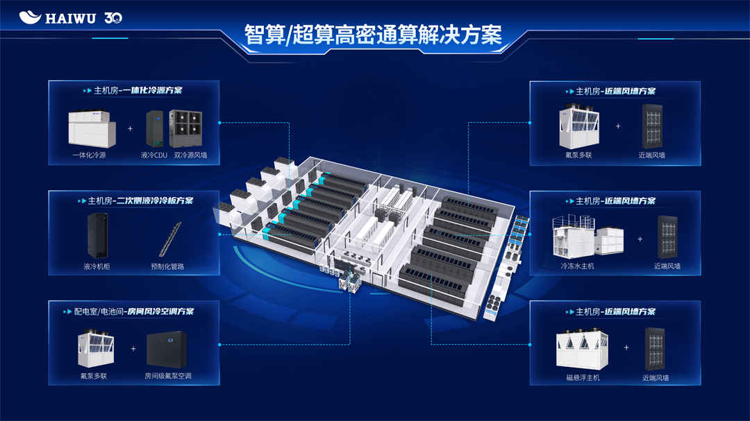 在AI大模型等應用的推動下,高密算力場景快速拓展,液冷正日益成為智算時代的主流冷卻方式。海悟堅持技術自研與體系化布局雙輪驅動,推出涵蓋冷板、CDU、液冷機柜、環網管路、冷源等在內的全鏈路液冷解決方案,構建起從部件級、產品級到系統級的完整技術架構。