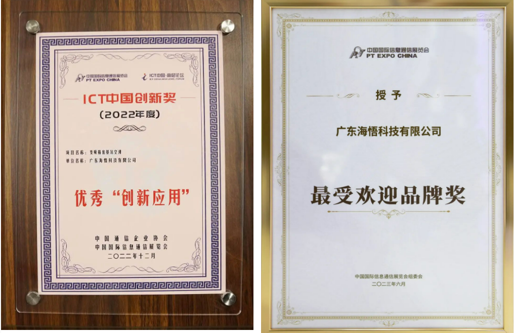 憑借自身雄厚的研發(fā)實力、強大的生產制造能力、完善的售后服務體系,海悟連續(xù)多年獲得中國國際信息通信展覽會組委會頒發(fā)的獎項,本次展覽期間,再次斬獲2022年度“技術創(chuàng)新應用獎”和“最受歡迎品牌獎”,印證著業(yè)界對海悟產品、技術和品牌實力的高度認可。