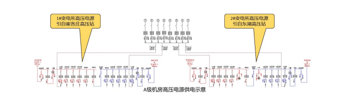 C級機(jī)房僅需要從同一個(gè)高壓站引兩路電源即可;若C級機(jī)房改B級機(jī)房,在有條件的情況下,應(yīng)由不同的高壓站各引一路電源;若C級機(jī)房改A級機(jī)房,則必須由不同的高壓站各引一路電源,在一路電源故障時(shí),另一路電源不應(yīng)同時(shí)受到損壞。