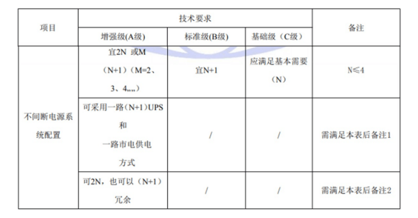 國標(biāo)GB50174-2017《數(shù)據(jù)中心設(shè)計(jì)規(guī)范》中對于A、B、C三級數(shù)據(jù)中心不間斷電源系統(tǒng)架構(gòu)的具體要求如下: