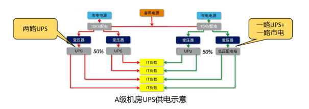 A級數(shù)據(jù)中心同時(shí)滿足下列要求時(shí),電子信息設(shè)備的供電可采用不間斷電源系統(tǒng)和市電電源系統(tǒng)相結(jié)合的供電方式。