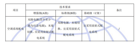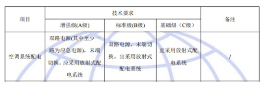 國標(biāo)GB50174-2017《數(shù)據(jù)中心設(shè)計(jì)規(guī)范》中對于A、B、C三級數(shù)據(jù)中心空調(diào)系統(tǒng)配電的具體要求如下:
