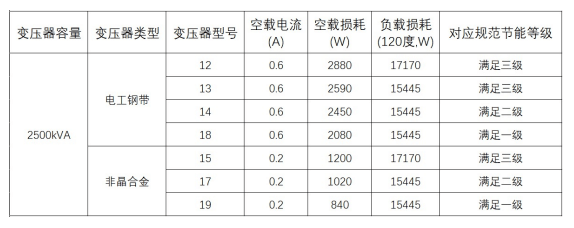 選擇高效的供電設(shè)備可以降低能耗并提高供電效率,如:干式變壓器改為非晶合金變壓器后,可降低變壓器總損耗30%。其對比傳統(tǒng)變壓器的節(jié)能效果如下: