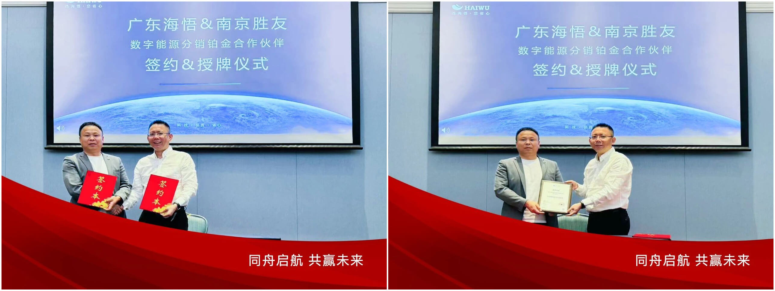 在簽約儀式上,海悟行業(yè)渠道事業(yè)部總經(jīng)理何正煒與南京勝友智能科技有限公司總經(jīng)理姚超分別代表雙方簽訂“海悟數(shù)字能源分銷鉑金伙伴”協(xié)議,并由何總為南京勝友頒發(fā)“海悟數(shù)字能源分銷鉑金合作伙伴”證書。