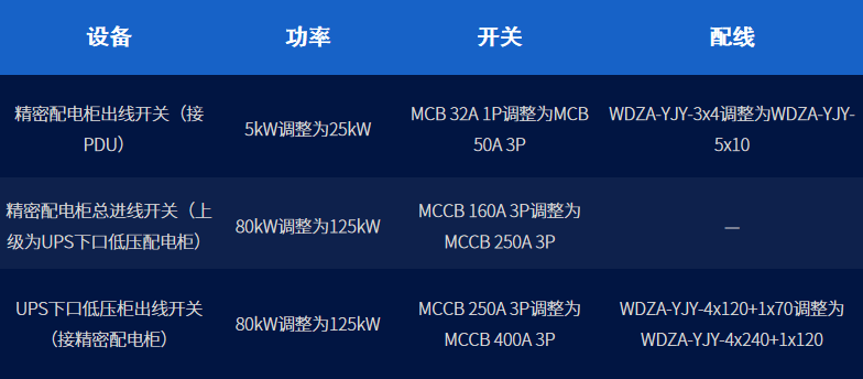 列間級精密空調方案具體新增配電設備明細如下: