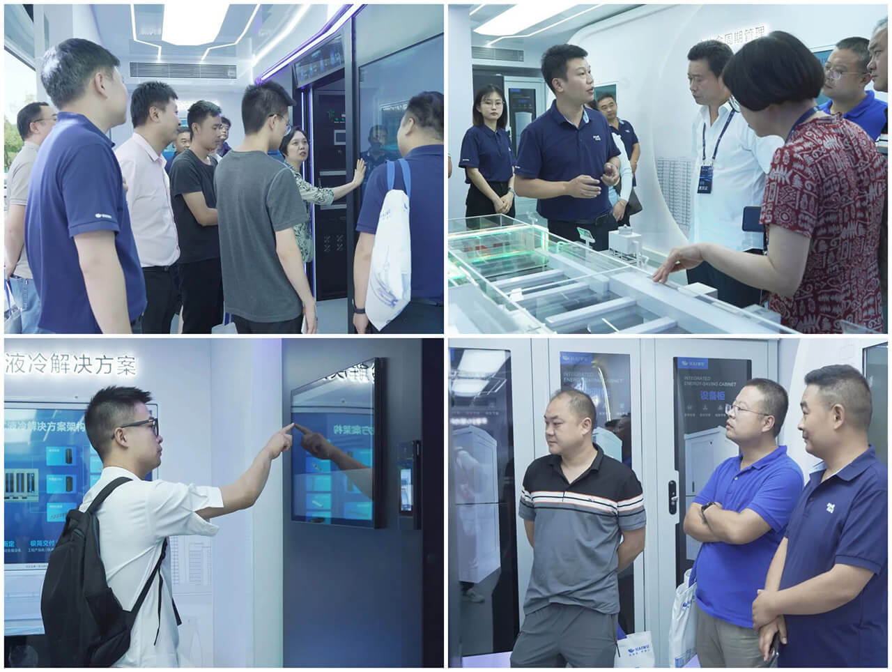 在展車參觀環節,參會嘉賓就先進產品技術與海悟進行深入的探討交流。尤其是在本次巡展全新升級亮相的液冷微模塊HyperBlock2000-LW吸引了大批嘉賓的關注和討論。