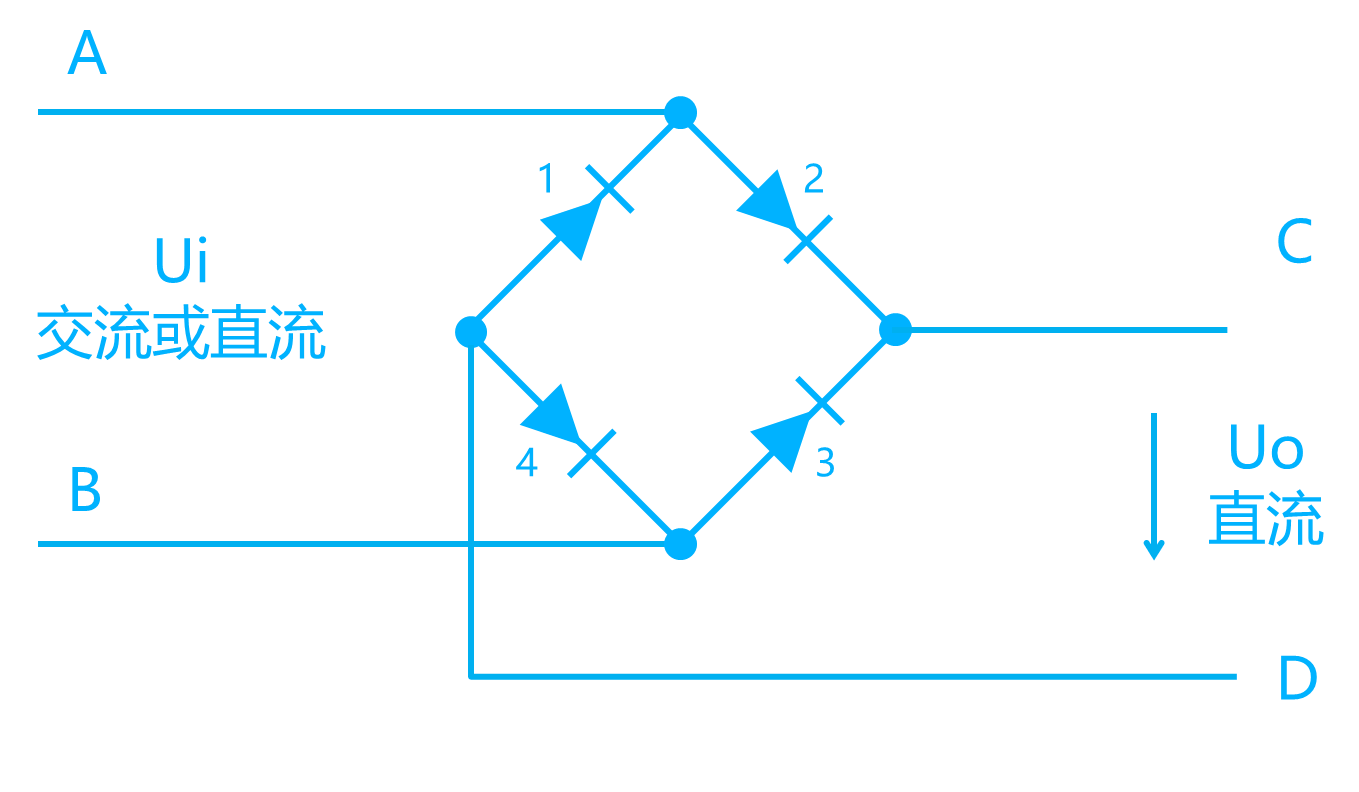 電子信息設備內部各電路是以直流電源進行工作的,為此在電子信息設備內部設計了一個電源模塊,無論供電電源是交流還是直流,經過電源模塊后都變成直流,故大多數服務器等電子信息設備可以接受交流電源,也可以接受直流電源供電,其原理見圖二。圖二是電子信息設備的電源模塊接受交流或直流電源時的工作原理。當電源模塊輸入交流電時,在交流電的正半周,電流流向是A→2→C→D→4→B;在交流電的負半周,電流流向是B→3→C→D→1→A,在C和D之間形成直流電源。當電源模塊輸入直流電,且A為正極,B為負極時,電流流向是A→2→C→D→4→B,當B為正極,A為負極時,電流流向是B→3→C→D→1→A,在C和D之間形成直流電源。