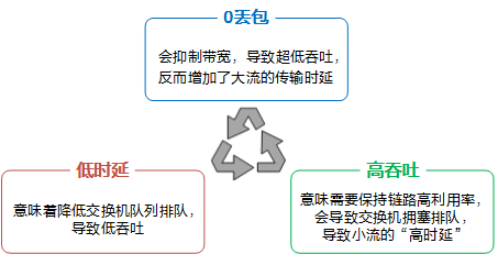 從上一節來看,為了滿足AI時代的數據高效處理訴求、應對分布式架構挑戰,0丟包、低時延、高吞吐成為下一代數據中心網絡的三個核心指標。這三個核心指標是互相影響,有蹺蹺板效應,同時達到最優有很大的挑戰。