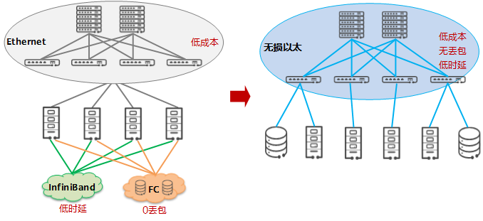 傳統的FC專網和IB專網,價格昂貴,生態封閉,且需要專人運維,也不支持SDN,無法滿足云網協同等自動化部署的訴求。