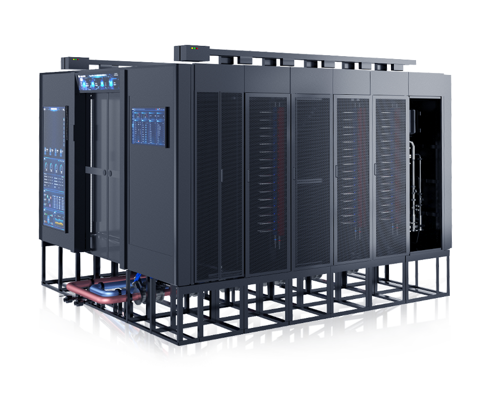 海悟液冷雙排數據中心解決方案以單個模塊為單位,采用模塊化設計理念,高集成高標準設計,整合IT機柜、配電單元、封閉組件、制冷單元、預制二次管路、布線、綜合運維等功能獨立的單元,實現數據中心的完整功能。液冷單個模塊組件全部在工廠預制安裝、調試,可靈活拆卸、搬運,即節約機房空間又可靈活擴展,實現現場批量快速部署,提供PUE≤1.15的高功率密度場景的綠色節能解決方案。