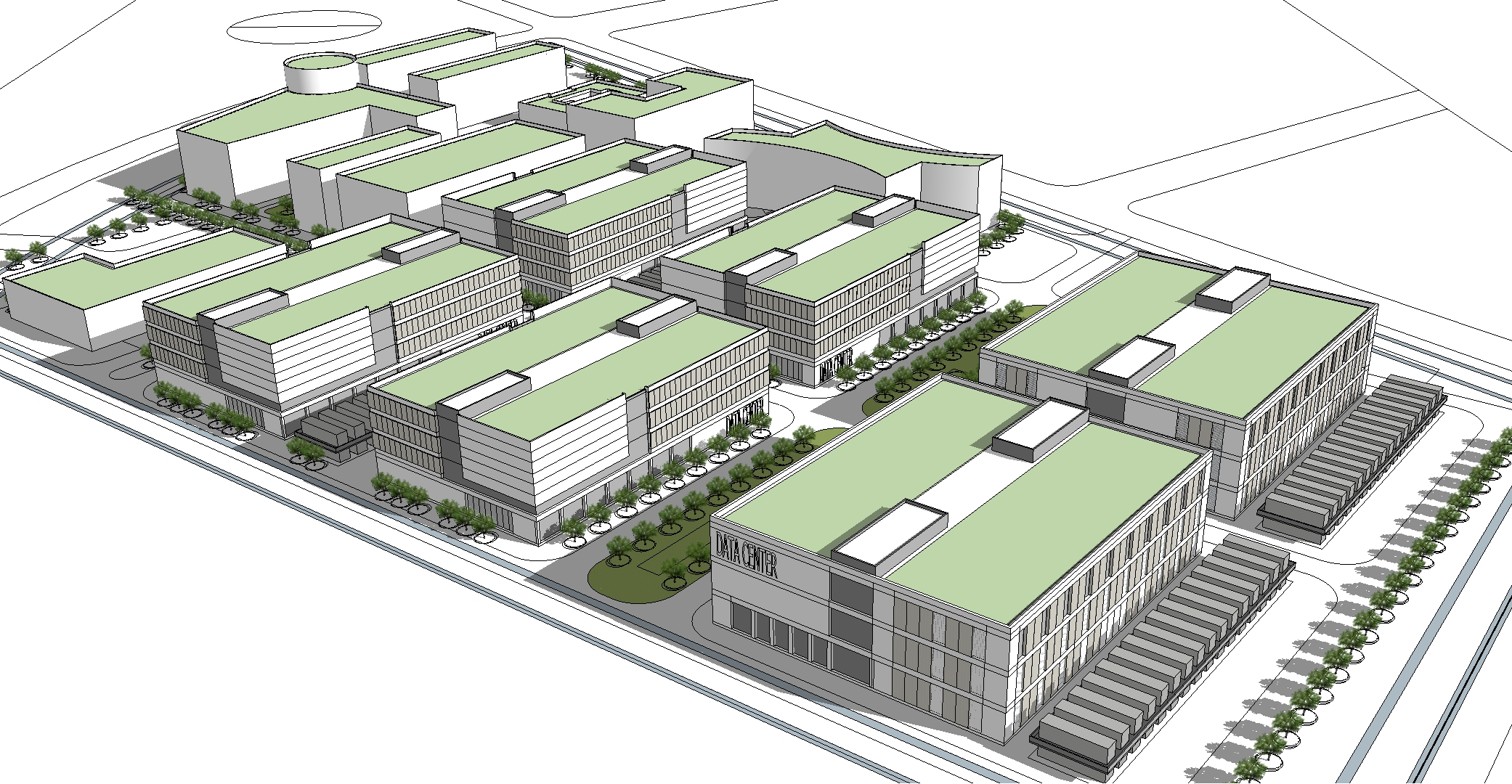 本項目園區位于南京,總用地面積132397.65m² ,總建筑面積184535.82m²,共設計6棟數據中心(其中4棟采用水冷方案,2棟采用間接蒸發方案)、2棟宿舍樓、1棟研發樓、1棟運維管理中心、1棟綜合服務中心、1棟行政辦公樓、1棟作為220kV變電站。