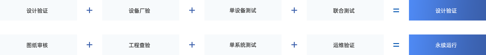 測試按專業分類,主要分為:電氣系統、暖通系統、弱電系統、消防系統、建筑五大類,電氣、暖通、弱電及消防又可以從工程安裝、設計驗證、單機驗證、單系統驗證、聯合調試、運維評估等6大維度 進行驗證,保證測試的完整性。