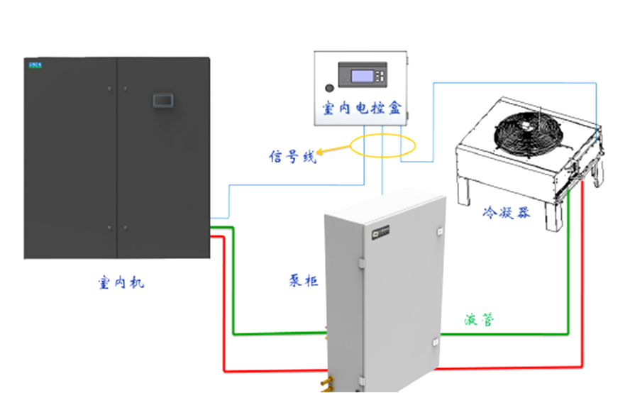 使常規(guī)風(fēng)冷精密空調(diào)具備氟泵功能; 室外溫度較低時(shí)充分利用自然冷源,實(shí)現(xiàn)節(jié)能效果;